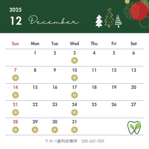 令和7年12月の休診日